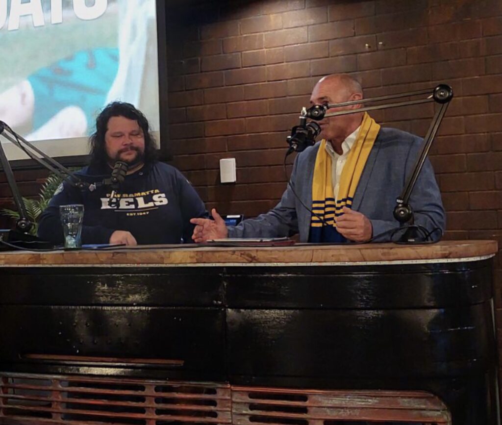 David Liddiard pictured talking to Forty during a TCT podcast at Parra Leagues