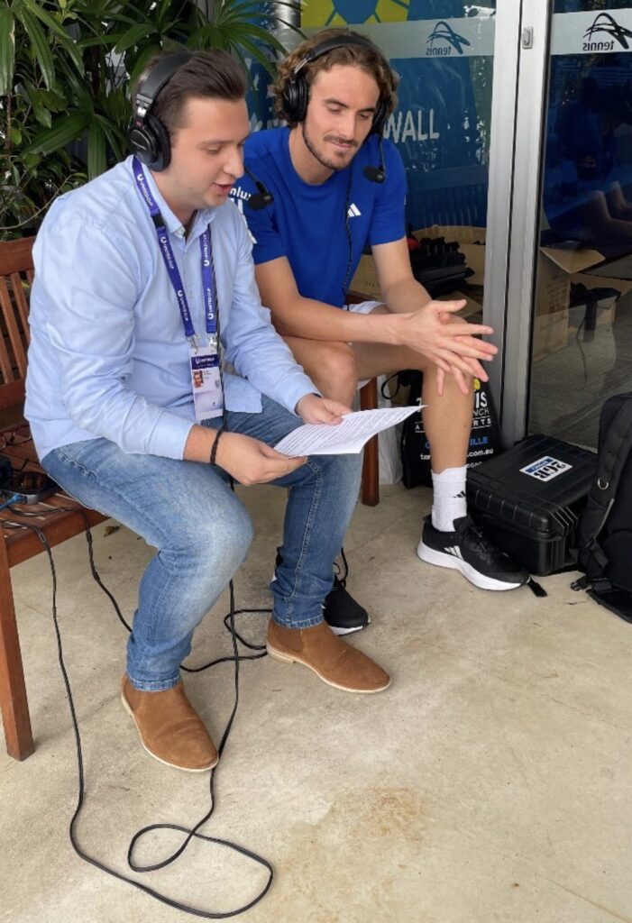 Spiro in action interviewing Stefanos Tsitsipas for the Wide World of Sport