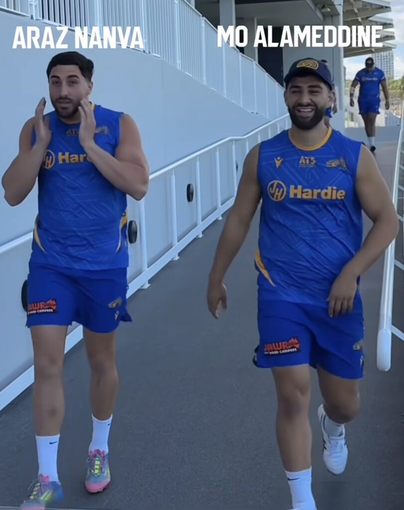 Strolling onto the training track in their civvies, Bailey Simonsson and Luca Moretti watched on from the sideline as the squad went through their paces, then joined the players as they returned to the C of E building.