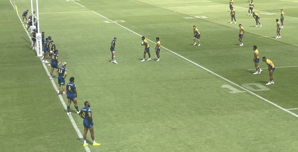 The Thursday session was all about the footy, and there was little doubt about the coaches’ plans when the players emerged from the sheds in home (NRL) and away (NSW Cup) jerseys.